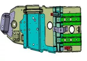 利用最少零部件精益設(shè)計(jì)理論,在保證電池托盤現(xiàn)有功能的前提下,對(duì)電瓶托盤支架進(jìn)行全新設(shè)計(jì),電瓶 托盤支架總成材料采用 PP+GF30 注塑一體成型,并將電瓶托盤支架整體注塑為 1 個(gè)零部件,采取卡接結(jié)構(gòu)與車 架相連,最終方案為蓄電池托盤總成零部件數(shù)量減少為 7 個(gè)。在零部件數(shù)量減少的同時(shí),滿足了部件原有功能 要求,零部件成本大大減少,由于取消了標(biāo)準(zhǔn)件的固定,零部件質(zhì)量得到大幅度提升,與車身的連接采用卡扣 結(jié)構(gòu),實(shí)現(xiàn)了蓄電池托盤總成的快速安裝。